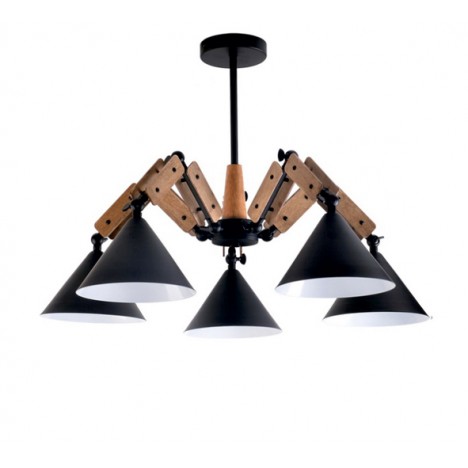 - Κρεμαστό industrial φωτιστικό σε μαύρο χρώμα με ξύλο.