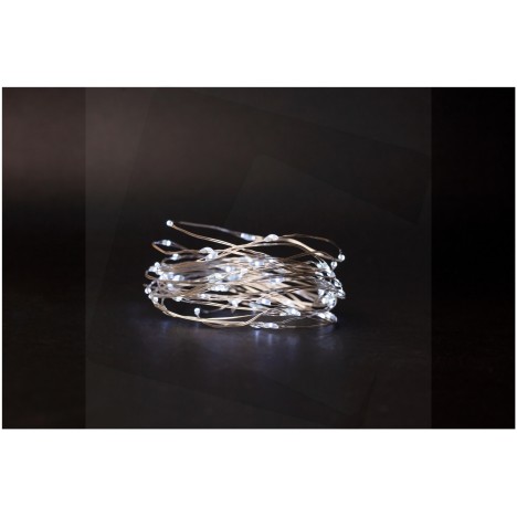 Χριστουγεννιάτικα Λαμπάκια Μπαταρίας 3AA Εσωτερικής Χρήσης IP20 80 LED Ψυχρό (6000Κ) σε ασημί καλώδιο χαλκού 4m